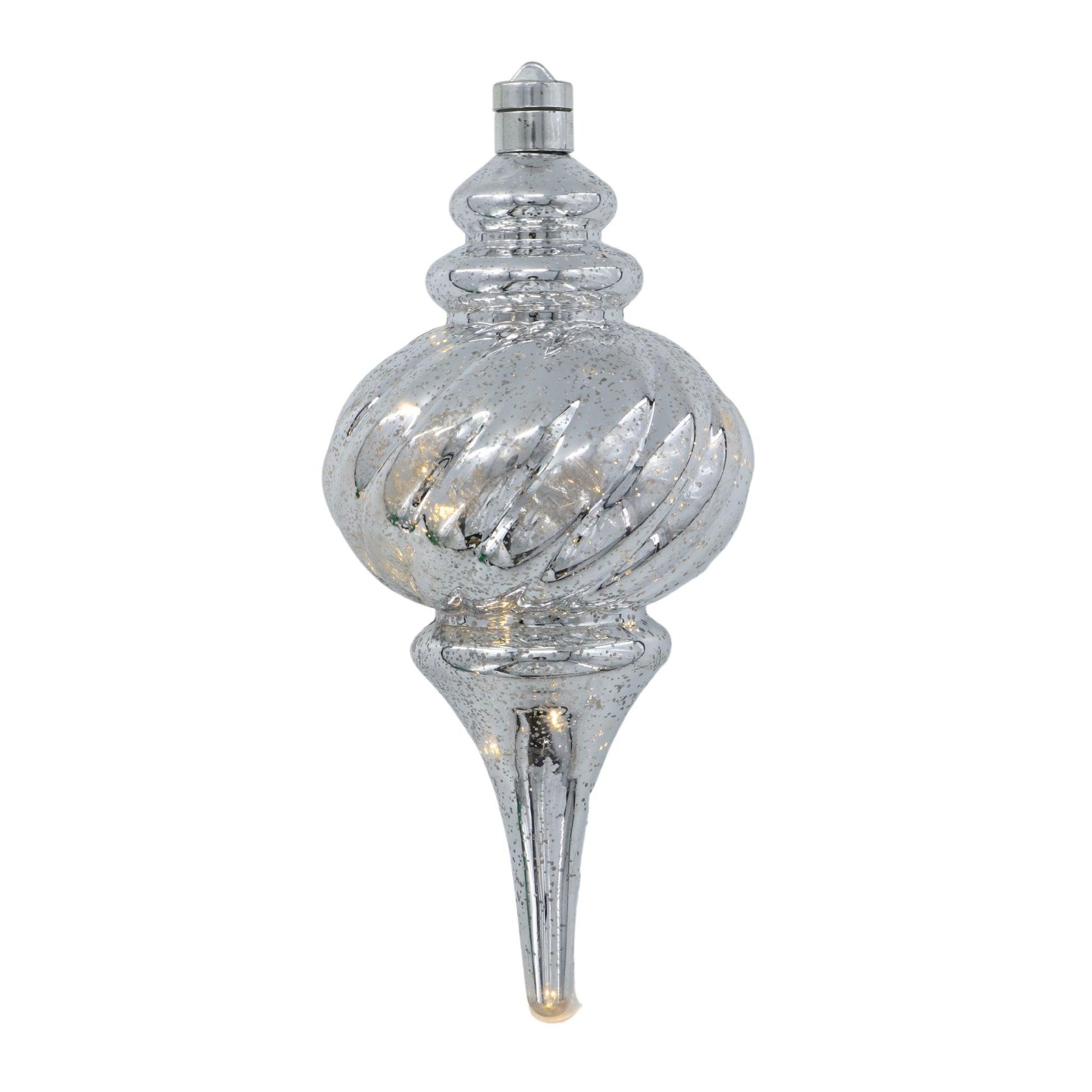 Enhance your holiday decor with this 12.5" shatterproof swirled finial ornament. Its traditional silver metallic finish and intricate design will bring a sophisticated touch to your tree. Its shatterproof material ensures its durability and longevity.