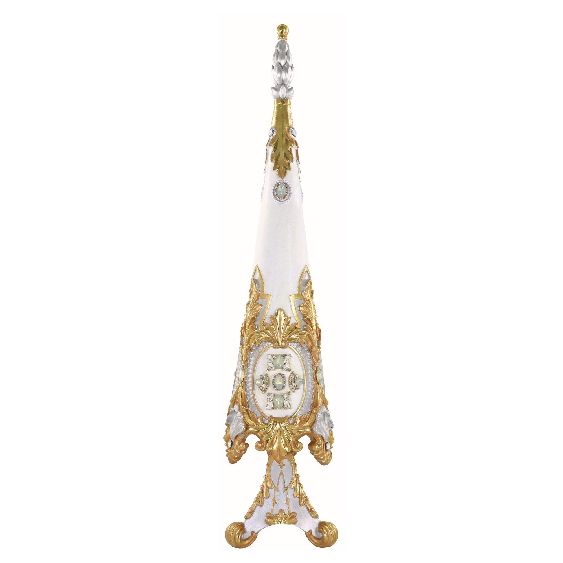 This 36" White Glittered Resin Ornate Jeweled Tree is perfect for your home decor needs. It features an ornate design with golden and white accents to create an elegant look. The tree is crafted from high-quality resin for superior durability and a stunning finish.