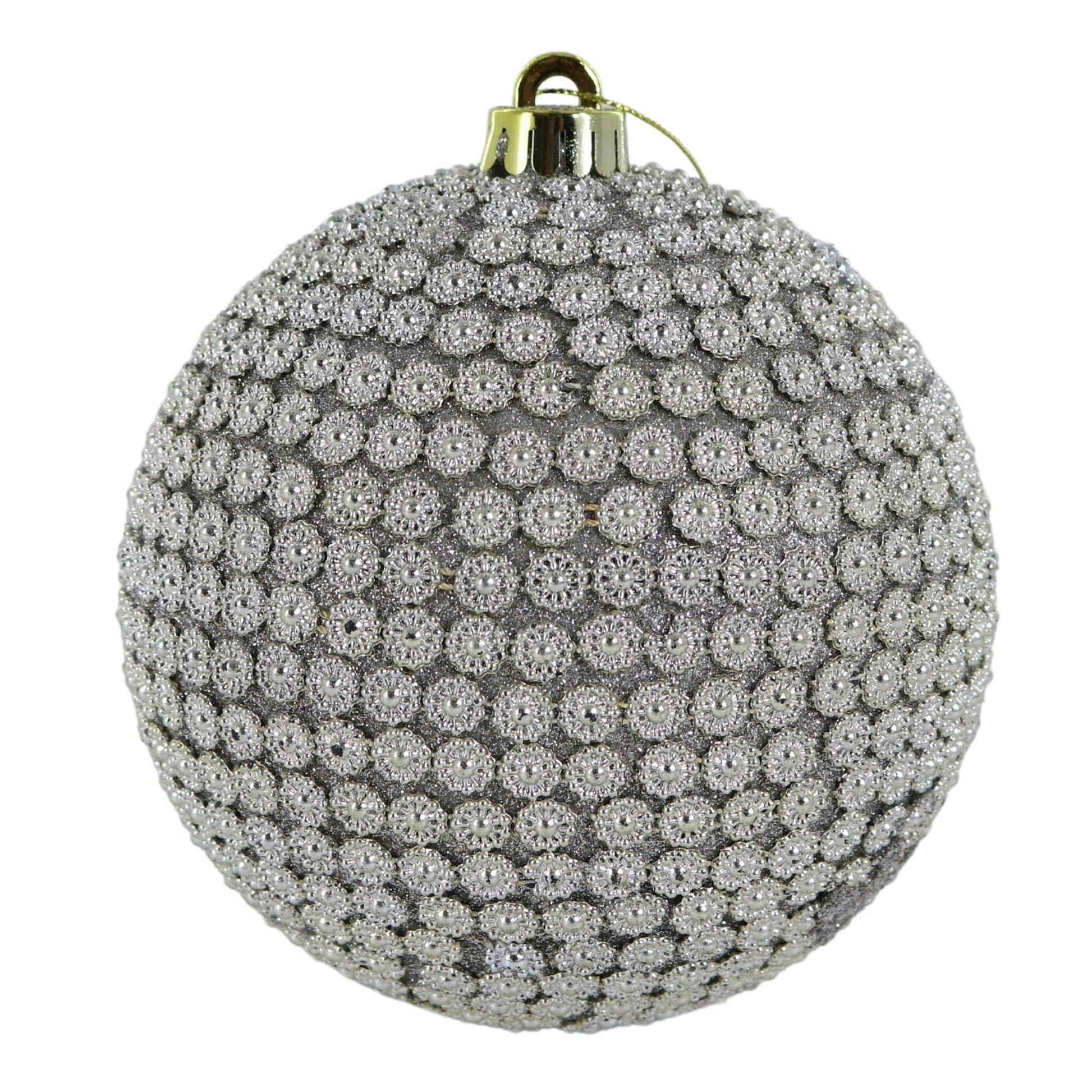 This 6" silver beaded ornament is the perfect traditional decoration for your Christmas festivities. Crafted with a polished silver metallic finish, the round ball looks modern and beautiful, adding style to any holiday display.