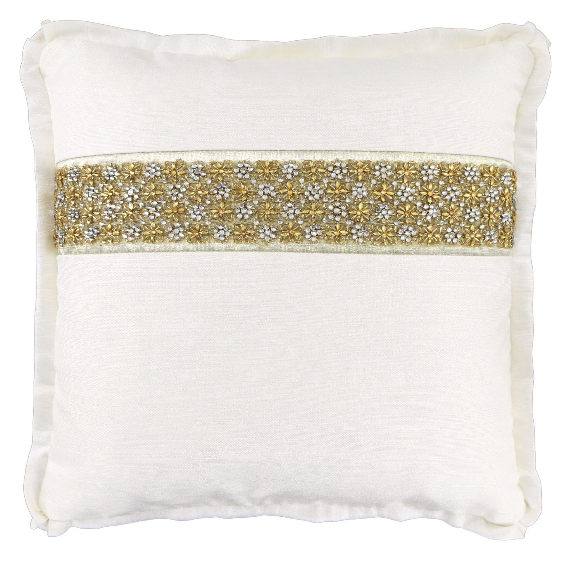 Custom Cream & Gold Accent Pillow with Beaded Trim